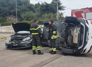 Scontro in provinciale: un’auto si ribalta, l’altra finisce fuori strada