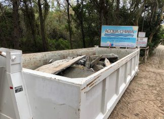 ALIMINI (Lecce) - Tonnellate di cemento sepolti sotto la sabbia durante le operazioni di smontaggio dello stabilimento balneare Acqua Chiara nella zona degli Alimini...