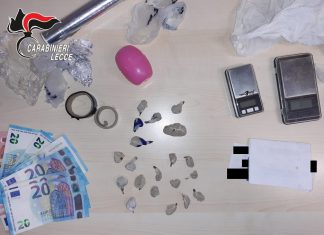 MELISSANO (Lecce) – Sorpreso a spacciare cocaina, si scopre che in casa aveva altre dosi pronte per la cessione e scatta l’arresto.