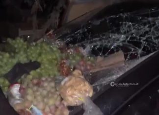 Paura in serata: auto sfonda gazebo di frutta e verdura, in...