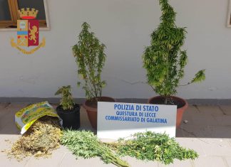 GALATINA (Lecce) – Gli agenti scorgono dai tetti una piantagione di marijuana e bussano alla porta di un 53enne, che così finisce nei guai...