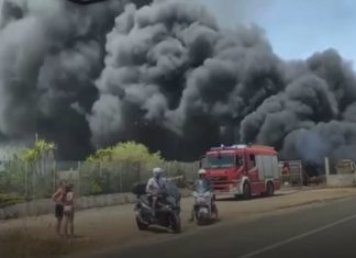 SAN CATALDO (Lecce) – Vasto incendio in serata sulla strada provinciale che collega Lecce a San Cataldo.