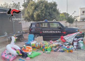 PORTO CESAREO (Lecce) – I carabinieri liberano circa 300 metri quadri di spiaggia libera occupata da ombrelloni e sdraio segnaposto e sequestrano merce destinata...