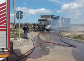 Il camion prende fuoco allo svincolo: paura per un autotrasportatore