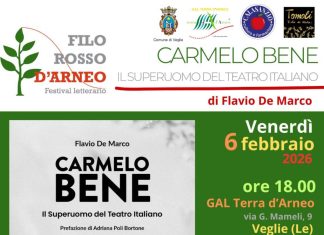 Gal Terra d’Arneo, 6 febbraio, presentazione del libro su Carmelo Bene...