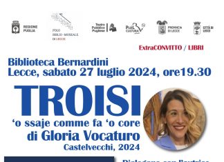 Sono due gli appuntamenti di questo fine settimana, sgoccioli di luglio, del breve e significativo “tour nel Salento” del pregevole lavoro letterario di Gloria...