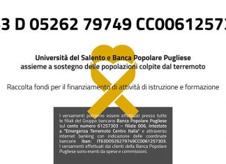 Università del Salento e Banca Popolare Pugliese assieme a sostegno delle popolazioni colpite dal terremoto nei giorni scorsi: Banca Popolare Pugliese, ente cassiere UniSalento,...