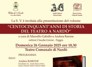 NARDO' (Lecce) - Centocinquant’anni di storia del teatro a Nardò è un libro a cura di Marcello Gaballo e Andrea Barone e racconta appunto...