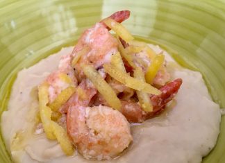 La ricetta del giorno: Mazzancolle al limone su crema di fagioli