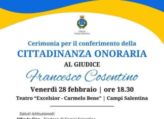 Campi Salentina: il giudice Francesco Cosentino riceve la cittadinanza onoraria