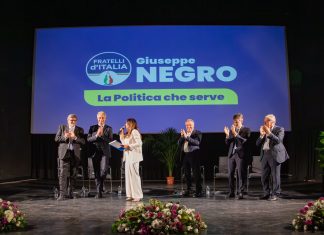 In un Cinema Moderno gremito, i vertici regionali e nazionali del partito della Meloni ufficializzano la candidatura del noto imprenditore salentino.