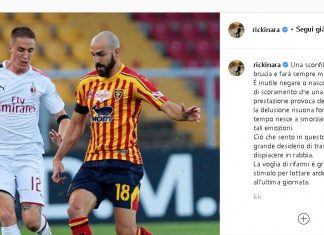Il trequarstista del Lecce Riccardo Saponara, fa mea culpa sul social e sul suo profilo Istagram promette “lotteremo ardentemente fino all’ultima giornata”