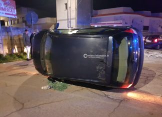 LIZZANELLO (Lecce) - Un’auto ribaltata, un furgoncino danneggiato e tanta paura, ma fortunatamente nessuna grave conseguenza per le persone coinvolte.
