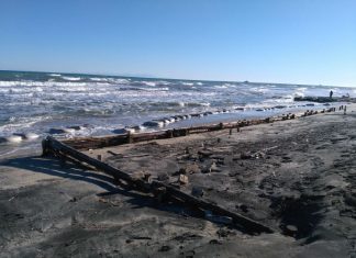 Dopo le mareggiate riemergono palizzate in legno e sacchi di rafia,...