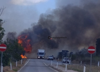 PRESICCE-ACQUARICA (Lecce) - Fiamme alte fino a 4 metri che lambiscono i mezzi in transito, fumo e tanta paura. Inferno di fuoco lungo la...
