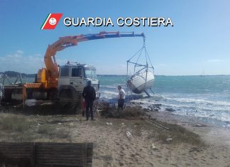 Barca a vela trascinata a largo dal vento di scirocco si...