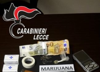 ALEZIO (Lecce) – Droga di ogni tipo per accontentare la richiesta di tutti i clienti. La perquisizione, però, interrompe gli affari del pusher.