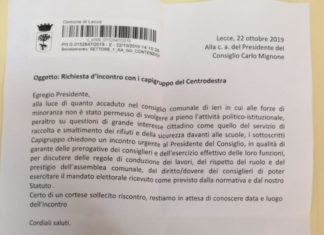 LECCE - "Quanto accaduto nell'ultimo Consiglio Comunale, il 21 ottobre, lascia l’amaro in bocca. Al netto delle belle parole in campagna elettorale, il Sindaco...