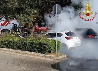 Fiamme in un parcheggio a Lecce: distrutte due auto