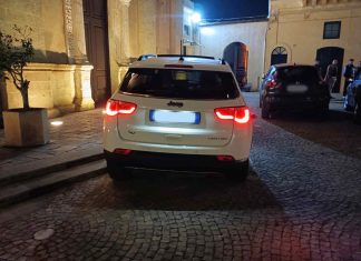 TAVIANO (Lecce) - Lascia l’auto in sosta sui gradini della chiesa San Martino di Taviano per raggiungere gli amici in un pub. Ma la...