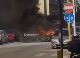 Auto prende fuoco in movimento, “inferno” nel centro di Lecce