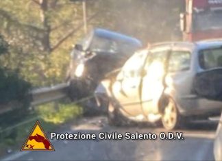 SALENTO - Tragedia sfiorata lungo la strada provinciale che collega Supersano a Casarano, dove si è verificato un violento scontro frontale tra due auto.