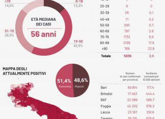 PUGLIA - L’indice dei positivi al covid risale al 12,51% rispetto al 9,41% di ieri.