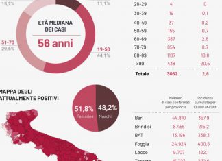 PUGLIA - Il SARS-CoV-2 non sembra ancora arretrare, soprattutto in provincia di Lecce, dove ultimamente sono state colpite scuole ed RSA. I ricoverati in...