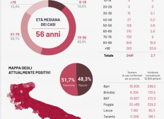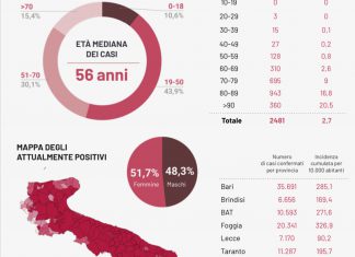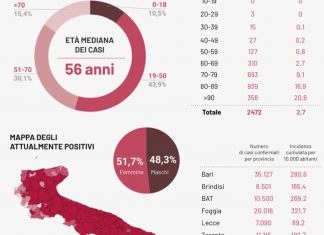 PUGLIA - Ancora buone notizie sul fronte della guerra al covid-19: c’è un calo dell’indice di positività del 17%, il numero di decessi è...