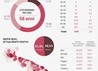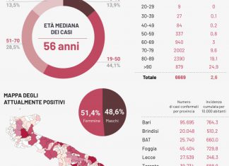 Covid, meno test e 56 nuovi casi positivi in Puglia: 12...