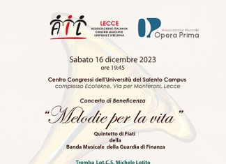 LECCE - Sarà il Quintetto di Ottoni della Banda Musicale della Guardia di Finanza ad impreziosire quest'anno il consueto appuntamento di Opera Prima ed AIL...