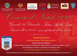 LECCE - Lions Club Lecce Messapia presenta un importante evento per il prossimo 22 dicembre alle ore 20.30: il Concerto di Natale, che ormai è...