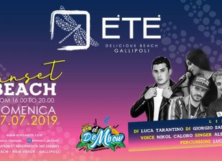 GALLIPOLI ( Lecce ) - Il 07 Luglio all'ÉTÉ Beach di Gallipoli iniziano le nuove domeniche "SUNSET BEACH" dalle 16 alle 20 con il...