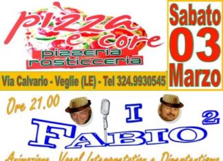 VEGLIE ( Lecce ) - Attenzione attenzione !! SABATO 03 MARZOI Fabio al Quadrato ritornano come promesso a Pizza e Core a Veglie ...amici...