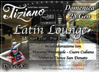 CALIMERA ( Lecce ) - Domenica 28 ripartiamo con l'appuntamento della domenica LATIN LOUNGE al Tiziano Cafè in Via Roma a Calimera. Appuntamento bisettimanale!!!...
