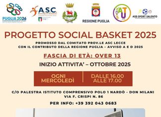 NARDO' (Lecce) - Riparte da ottobre il Progetto SOCIAL BASKET 2025, anche quest’anno promosso dal Comitato PROV.LE ASC LECCE, con il contributo della REGIONE...