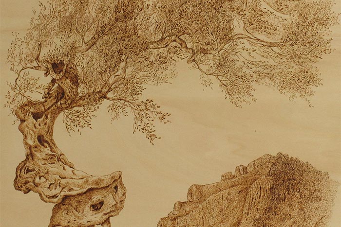 Gli ulivi nelle pirografie di Silvana Bissoli, Chiesa dei Battenti, Galatina...