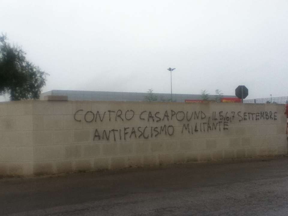 Raduno Casapound, la tensione cresce: lasciate scritte offensive sui muri